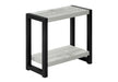 • Design and Finish: This 2-tier accent table features a thick, rectangular tabletop and a fixed lower shelf in a wood-look finish. The wood-grain texture adds a natural and contemporary appeal to the design.
