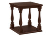 • Stylish Design: The square accent table features a thick top with grooved lines and turned post legs, finished in a traditional espresso brown veneer, adding elegance to any room.