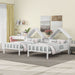 Double Twin Platform Bed With House Shaped Headboard And Built In Nightstand - White