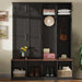 Farmhouse Hall Tree With 4 Hidden Hanging Hooks, Versatile Seating Bench With 8 Doors, Entryway Shoe Cabinet With Open Compartments For Living Room - Black