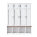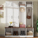 Farmhouse Hall Tree With 4 Hidden Hanging Hooks, Versatile Seating Bench With 8 Doors, Entryway Shoe Cabinet With Open Compartments For Living Room - White