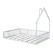Full Size House Platform Bed With Guardrail - White