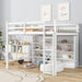 Full Size Loft Bed With 8 Open Storage Shelves And Built In Ladder - White