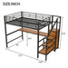 Full Size Loft Bed & Desk, Storage Staircase, Small Wardrobe And LED Light - Black