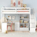 Twin Size Loft Bed With L-Shaped Desk, Drawers, Cabinet And Storage Staircase - White