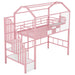 Loft Bed With Roof Design And Storage Box, Twin, Frame With Guardrails And Integrated Ladder - Pink