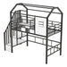 Metal Loft Bed With Roof Design And Storage Box With Guardrails And Integrated Ladder