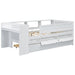 Twin Daybed With Drawers, Trundle, Headboard Storage, Study Desk, And USB Charging Station - White