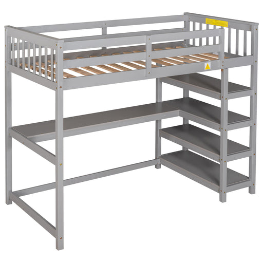 View full detailsLoft Bed With Storage Shelves And Under Bed Desk