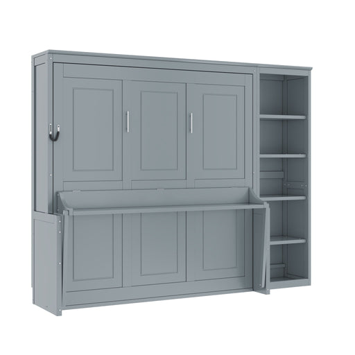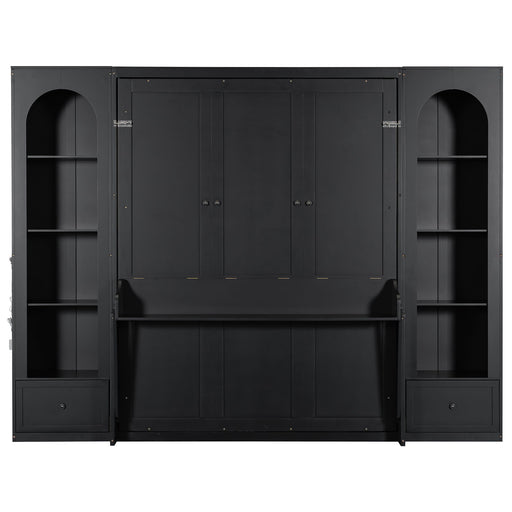 Queen Size Murphy Bed With Louvered Design And Multiple Storage Shelves - Wood