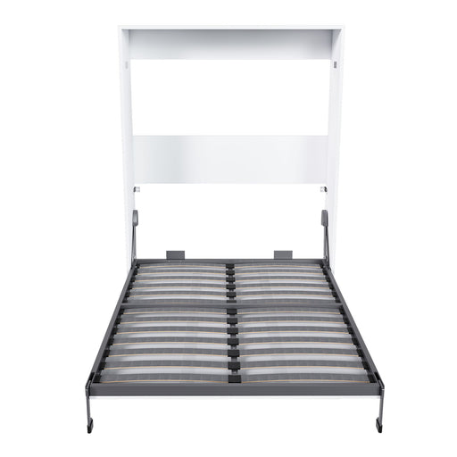 Queen Size Murphy Bed With Louvered Design And Multiple Storage Shelves - White