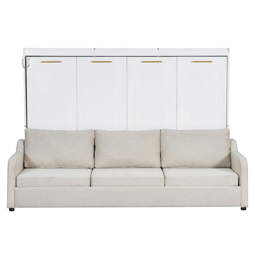 Queen Size Murphy Bed With Sofa And LED - Beige