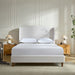 Hannah - Queen Upholstered Wingback Bed Size, Tall Headboard Upholstered Queen Bed, Premium Textured Canvas Chenille Look, Minimalist Designs, No Box Spring Needed - Ivory