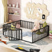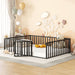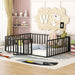 Queen Size Floor Bed Frame With Fence And Door - Black
