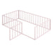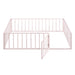 Full Size Floor Bed Frame With Fence And Door - Pink