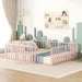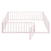 Queen Size Floor Bed Frame With Fence And Door - Pink