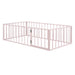 Twin Size Floor Bed Frame With Fence And Door - Pink