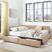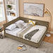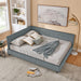 Mid-Century Storage Upholstered Tufted Bed Frame With Backrest And Armrests