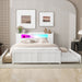 Queen Size Storage Platform Bed With LED Lights, 2 Drawers And Twin Trundle - White