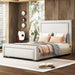 Queen Size Upholstered Bed With Slats Support, No Box Spring Needed - Beige