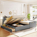 Queen & Twin Long Size Upholstered Platform Bed, Mother & Child Bed With Hydraulic Storage System, Drawer Box, Bedhead Storage Shelf And 2 Pairs Of Sockets & USB Ports - Gray