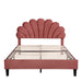 Queen Size Upholstered Platform Bed With Flower Pattern Headboard - Bean Paste Red