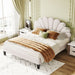 Queen Size Upholstered Platform Bed With Flower Pattern Headboard - Beige