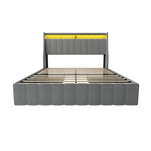 View full detailsQueen Size Bed Frame With LED Lighting, Winged Headboard With Storage Drawers - Light Gray