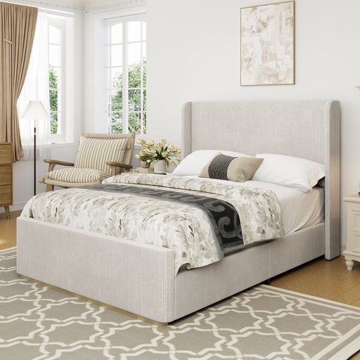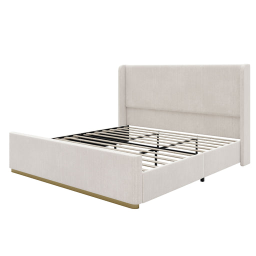 View full detailsKing Size Luxurious Corduroy Upholstered Bed Frame With Vertical Stripe Wingback Headboard And High Footboard - Light Gray