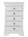 • Chrome Drawer Pulls: Updated traditional design featuring chrome drawer pulls with decorative faux crystals for a touch of elegance.