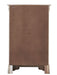 • Embossed "X" Design: Silver champagne embossed "X" design on wood veneers enhances the bedroom group's aesthetics.
