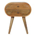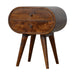 - Circular Nightstand - This round style nightstand has been constructed from 100% solid mango wood. It features 2 drawers which provide great storage and will come in handy before bedtime. Some other features include 4 Nordic style legs and shiny knobs on the drawers. It can be used alone or be partnered with the other rounded furniture pieces from the collection.
