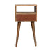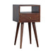 - Mini Nightsand - This beautifully designed nightsand is constructed from 100% solid mango wood and has a rich finish. Useful storage space is available with a 1 drawer, 1 shelf and a decent sized table top to place any ornaments. Other features include a pull out drawer, and 4 Scandinavian styled legs to give it that Nordic/modern style which will suit most interiors.
