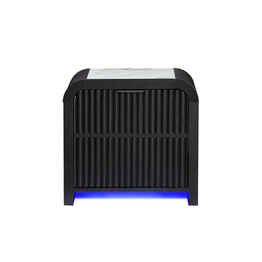Beverly - Nightstand With Cooler And Speaker, LED Light, Rounded Sides - Black White
