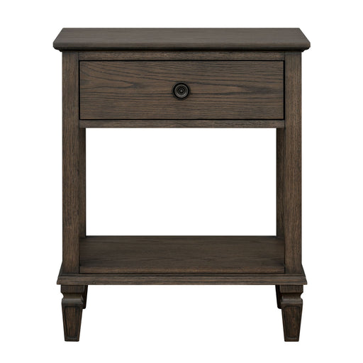 Classic Design: Features a timeless look with aged brown oak finish and wire brush detail. Storage Options: Includes one drawer and one open shelf...