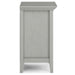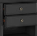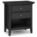 - Features two (2) spacious drawers with metal drawer glides and open bottom storage area
