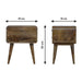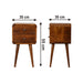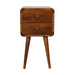 • Curved nightstand - Endlessly versatile, this curved nightstand table makes a perfect stand for nibbles, drinks, or a lamp. It will prove handy all over your home and is made from 100% solid mango wood and has a fine finish. It has curved edges which will fit into any home/living space. It also comes with 2 drawers that come with shiny knobs and 4 Nordic style legs.