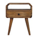 - Newton Nightstand - With its elegant curves and timeless craftsmanship, this nightstand is handcrafted from 100% Solid Mango Wood in a rich finish. Designed for both style and functionality, it features a single drawer with a royal brass knob for discreet storage and an open shelf for easy access to books or essentials. Resting on sleek, tapered legs, this piece brings a refined mid-century charm to any bedroom or living space. Durable, sustainable, and effortlessly stylish, it seamlessly blends practicality with artisanal beauty, making it a standout addition to your home.