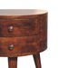 • Odyssey Tripod Nightstand - This beautifully designed tripod bedside is constructed from 100% solid mango wood in a chestnut finish and has a smooth circular half-moon design along with 2 shiny knobs on both of the drawers for easy access. A lovely, simple addition and accent piece for the home which can be incorporated with different interiors and styles of furniture.
