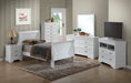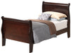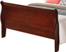 - Panel Sleigh Bed Design: Features a classic and elegant design with wood veneers and trim.