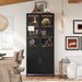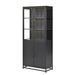 Modern Style Tall Steel Display Cabinet With Double Glass Doors, LED Lights, 3 Sided Glass For Collectibles - Black