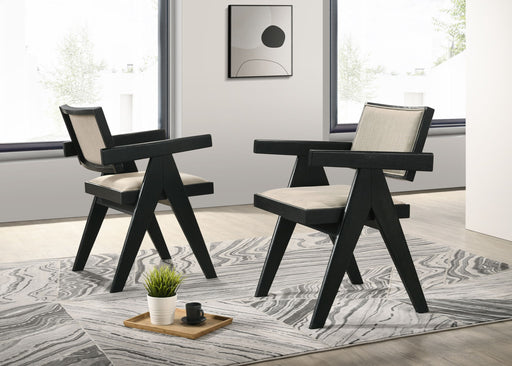 View full detailsJasper - Dining Arm Chairs With Upholstered Seat (Set of 2) - Ebony Black / Beige
