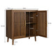 Grille Striped Sideboard Buffet Cabinet With Storage, Multifunctional Accent For Dining Room, Living Room - Walnut
