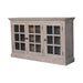 - Solid Wood Stone Wash Triple Glazed Cabinet - This glazed cabinet is constructed from 100% solid mango wood which is meticulously hot dipped using a laborious caustic wash technique. This lengthy multi-stage finishing process gives a beautiful weathered and aged acid-washed finish. It features 3 glazed doors with shelves inside to place things such as special ornaments, pictures etc as well as shiny, brass knobs on the doors.