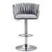 360 Degree Swivel Bar Stools Adjustable Counter Height Bar Chairs With Woven Back & Footrest, Silver Chromed Bar Stools For Kitchen Island (Set of 2) - Gray