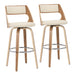 - Modern Appeal: The Cecina Barstool by LumiSource combines contemporary design elements with traditional features, showcasing a curved wood frame, chrome footrest, and a swivel seat that complements its cushioned back and seat.