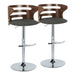 Cosi - Mid-Century Modern Adjustable Barstool With Swivel With Rounded T Footrest (Set of 2) - Chrome / Walnut / Charcoal