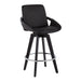 • Functional Features: Designed with a fixed counter height, the stool includes a 360-degree swivel function, stylish faux leather upholstery, and sturdy wood legs with a round chrome footrest.