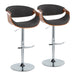 Curvo - Mid-Century Modern Adjustable Barstool With Swivel With Rounded T Footrest (Set of 2) - Chrome / Walnut / Charcoal
