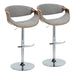 Curvo - Mid-Century Modern Adjustable Barstool With Swivel With Rounded T Footrest (Set of 2) - Chrome / Walnut / Cream